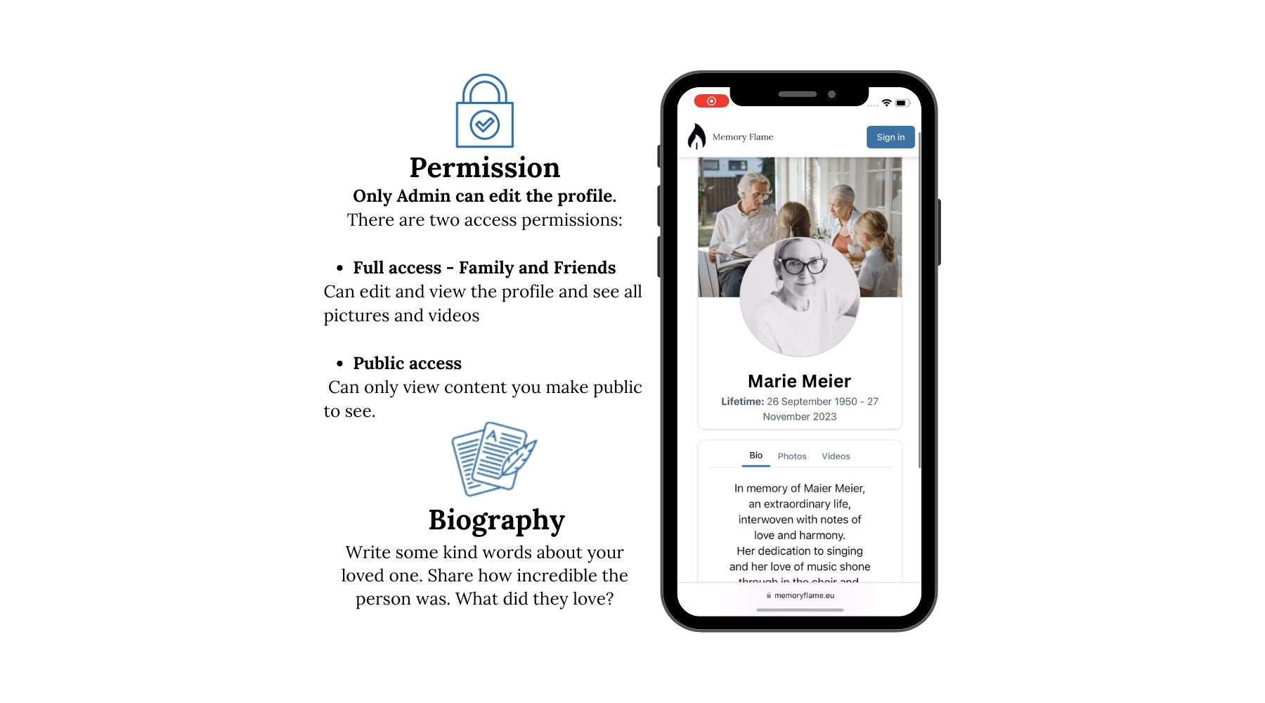 ⚡Access to our Memory Flame App with unlimited storage space